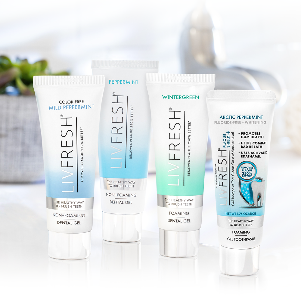 - CLINICALLY PROVEN WITH 30-DAY SATISFACTION GUARANTEE & HELPS PREVENT COSTLY PROCEDURES - LIVFRESH uses Activated Edathamil to clean teeth and heal gums on a molecular level. LIVFRESH removes plaque 250% better, improves gum health 190% more, reduces tartar build-up, eliminates bad breath, soothes dry mouth, and gently whitens teeth better than leading toothpaste brands. Arctic Peppermint delivers a breakthrough plaque fighting formula PLUS an amplified cooling effect for all-day fresh breath and a long-lasting clean feel.Brushing with LIVFRESH can help you save thousands by improving your oral health and preventing expensive dental procedures.